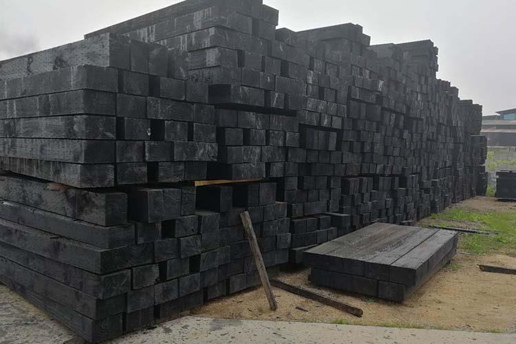 我公司生產的鐵路防腐枕木四面光滑,經過高壓熏蒸,注油處理,使用壽命長。