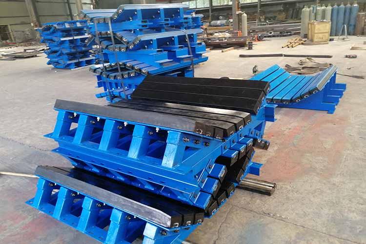 重型緩沖床是緩沖塊和托輥的結(jié)合體,兼顧了二者的優(yōu)點(diǎn),用于重載高速的輸送機(jī)。換言之:如果落料高度較高,運(yùn)輸物料較重,皮帶機(jī)較快,當(dāng)您的適用情況,滿足上述任意兩條,須選用復(fù)合式重型緩沖床。有時(shí)普通緩沖床承重能力吃力時(shí),也可以選用重型緩沖床,就是在普通緩沖床的基礎(chǔ)上,再加上一組承重托體,或者把全部普通托體全部換成工字鋼托體。